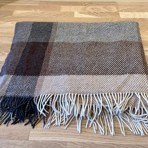 Pleddet måler 130 × 200 cm, har fine frynser og kan brukes i sofaen, som sengeteppe eller som ekstra varme ute på terrassen. Ullen har naturlige, selvrensende egenskaper og er smussavvisende – en praktisk kvalitet når du vil ha både komfort og lavt vedlikehold.
