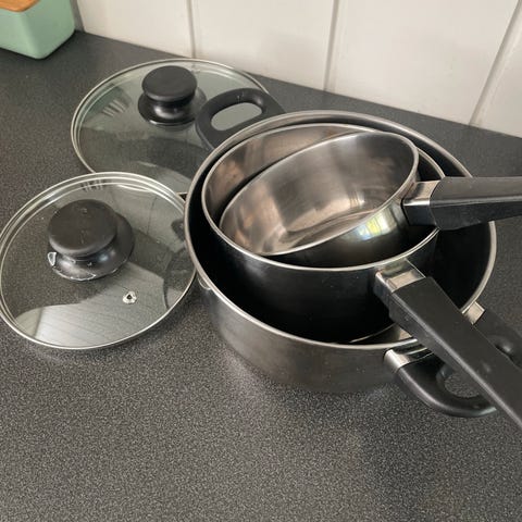Kitchen Essentials Grytesett 3 deler med glasslokk