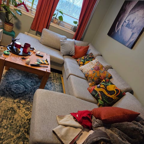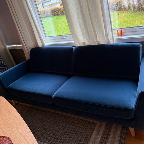 3 seters sofa fra jysk med stofftrekk selges på grunn av ny. Brukt i 8 mnd ca så fortsatt i veldig god stand.
