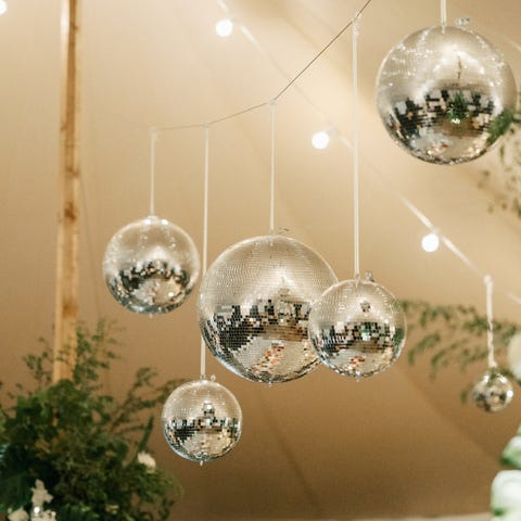 Groove Disco Startsett speilball for bruk i forskjellige årstider. Settet inkluderer en speilball som reflekterer lys, egnet for diskotek og festmiljøer.