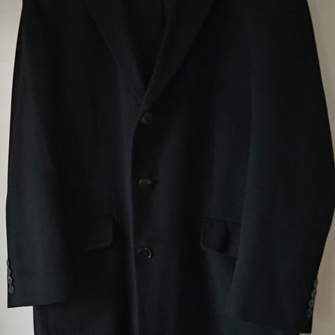 Selger en pent brukt frakk i ullblanding fra Dressmann.