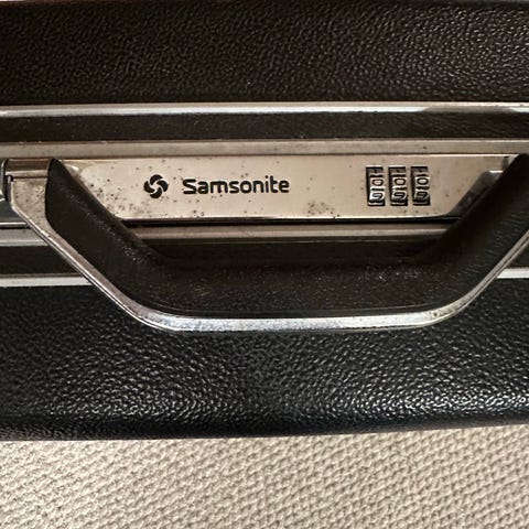 Godt brukt. Trenger nye hjul da to har falt av under behandling hos flyselskaper. Koster 250,- ca for et nytt hjul som dettes på hos Samsonite sin egen butikk