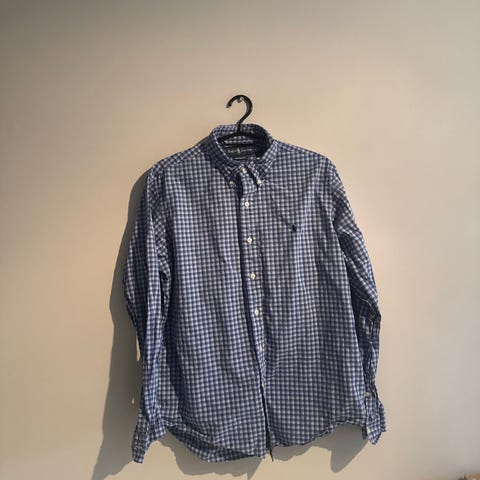 GANT Windor Twill fitted skjorte i blå farge, størrelse S, laget av bomull. Skjorten har et rutemønster.