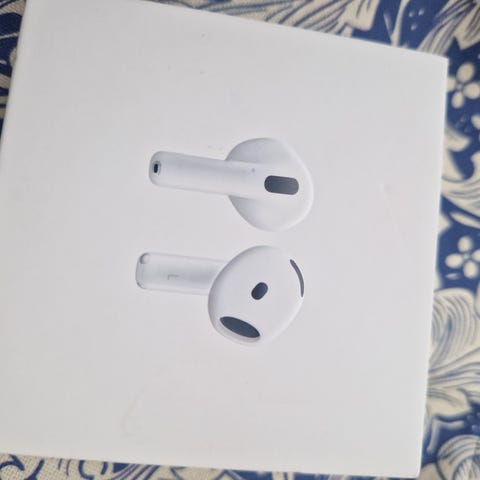 Helt nye og ubrukte AirPods 4. Ment som gave, men "feil" type. Kunne ikke byttes fordi pakken var åpnet.