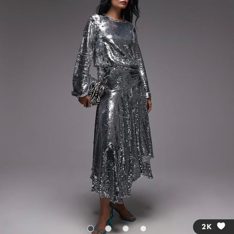 En perfekt kjole til å feire starten på et nytt år. Paljettene har en blanding av dus rosa og sølv.