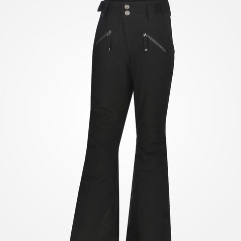 Vann- og vindtett alpinbukse med retropreg og sølvdetaljer. Buksen er laminert med fleece, har formsydde knær og lett utskrådde ben med glidelås bak.