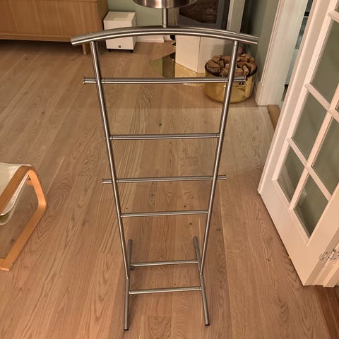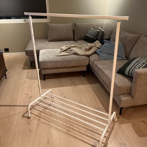 Selger brukt klesstativ fra IKEA. Det er montert, og vil derfor enten kreve romslig bagasjeplass eller må demonteres.