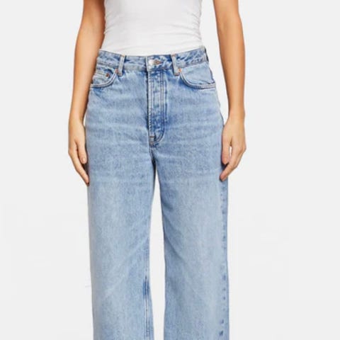 Superkul jeans fra Samsøe Samsøe i en vintage-grå farge. Den er deilig og myk og ha på. Jeansen sitter høyt i livet og ha vide ben. Sitter veldig fint på! Selges pga feil størrelse. Brukt en gang.