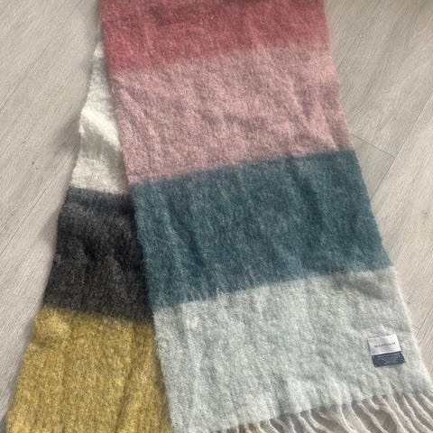 Holzweiler skjerf i flerfarget design laget av mohairull. Skjerfet har en størrelse som passer de fleste (one size). Materialet gir varme og komfort, egnet for bruk i kaldt vær.