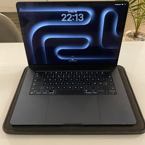 Specs: M3 chip, 16 GB RAM,256 GB SSD, 13.6’’ Retina skjerm.