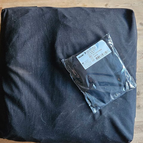 Sort sittepute for trykkavlastning. Sittering. Den er svært lite brukt. Putens materiale og størrelse er egnet for komfort og støtte ved lengre sittetid.