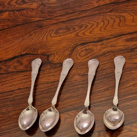 J. Tostrup ,,musling,, Sølvskje med dekorativt mønster