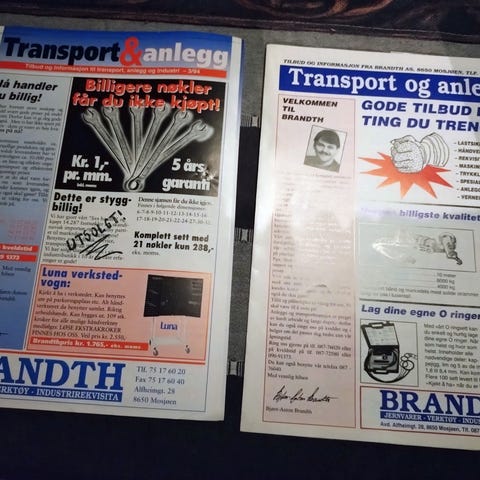 Anlegg & Transport blader selges 25,- pr stk + evt porto.