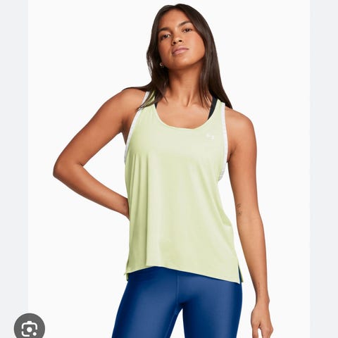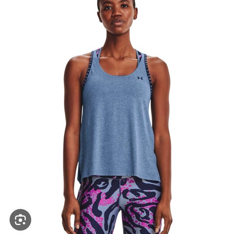 Under Armour treningssinglet for dame i størrelse M. Singlet er blå og designet for fitnessaktiviteter. Vide i fasongen. Selges samlet