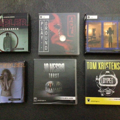 Samling av krimbøker på cd av ulike forfattere