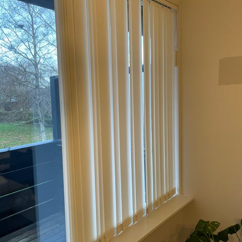 Nye, hvite lameller fra Jysk. 300 cm x 250 cm