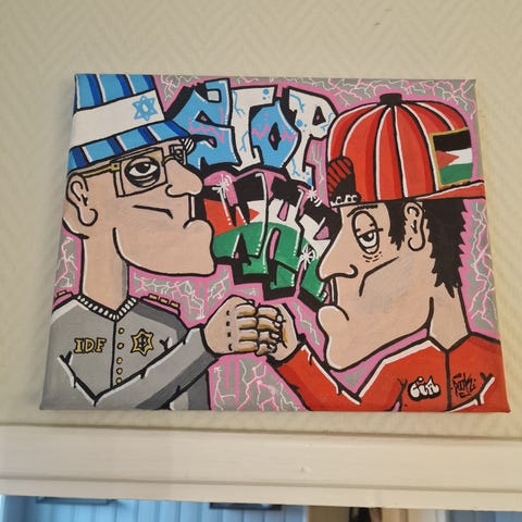 Håndlaget bilde med tøff hodeskalle-illustrasjon og hjerteøyne – et skikkelig blikkfang som passer perfekt i moderne interiør, kontor, gaming-rom eller ungdomsrom.