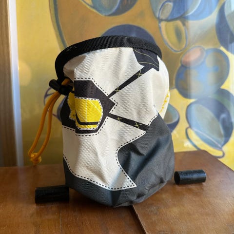 Black Diamond klatresekk i blå farge. Sekken har justerbare stropper og glidelåslomme på forsiden. Egnet for oppbevaring av klatreutstyr.