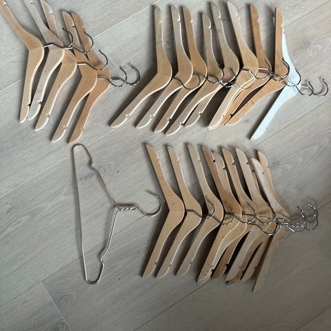 IKEA kleshenger i tre med metallkrok. Passer til oppheng av klær i barnerom eller garderobe.