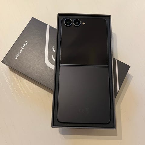 Selger en Samsung Galaxy Z Flip 7 med 512 GB lagring i den flotte fargen Coral Red. Telefonen fungerer helt som den skal.