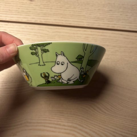 Arabia Moomin utgått skål «Vinterens Eventyr» fra 2022. Har små merker etter vanlig bruk.