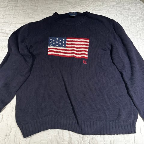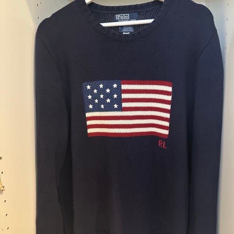 Selger en pent brukt Ralph Lauren flag genser. Jeg har vokst fra den, så den må selges. Se bilde for verifisering. Send melding hvis du har spørsmål.😊