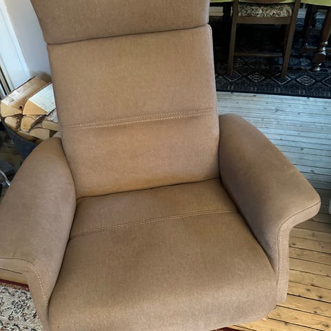 Hvilestol med elektrisk styring av rygg og fothviler.