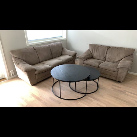Kjøpt ny februar 2024, verdi da over 21 000. Framstår som meget lite brukt. Nydelig velurstoff i beige farge. Tre-seter med ekstra dybde. Mål er 188x97x47.