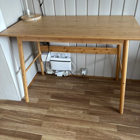 Selger et pent ANFALLARE / HILVER skrivebord fra IKEA i bambus.