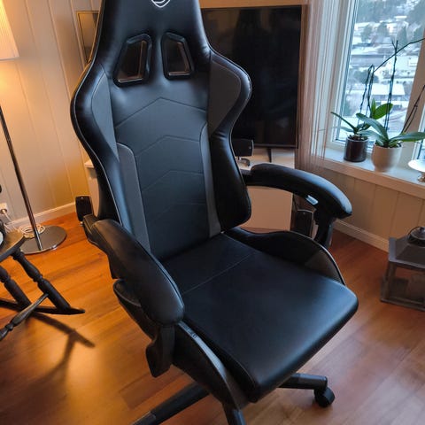 Veldig pent brukt gamingstol, brukt av voksen som kontorstol på hjemmekontor. 1 år gammel, men veldig pent brukt, ser lite brukt ut. Nypris 3.699,-