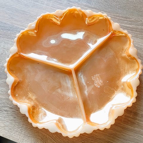 Vintage hjerte-tallerken 27 cm porselen – røde sømmer