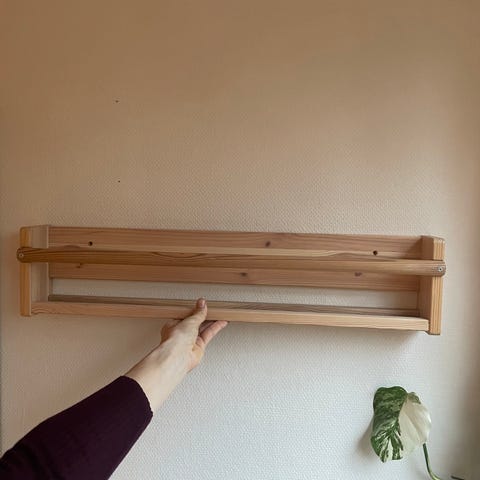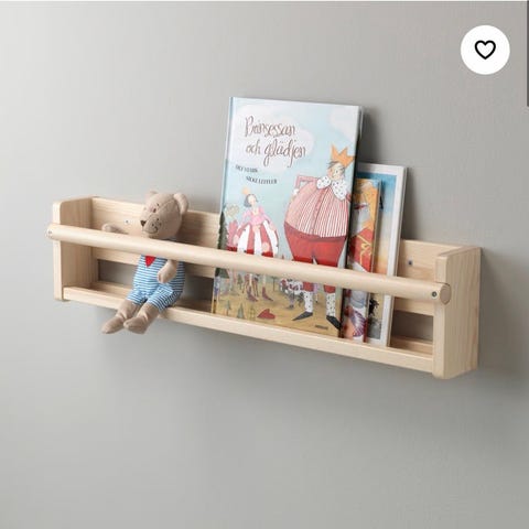Hvis du henger veggoppbevaringen i barnevennlig høyde kan barnet ditt selv hente yndlingsboka når det er lesestund.