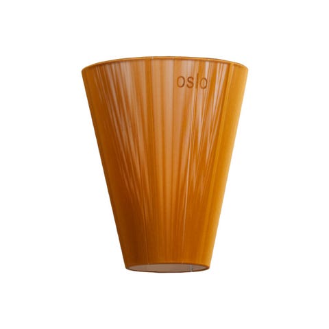 Oslo Wood gulvlampe fra Northern. Sorte ben og beige skjerm. -fint gyllent lys.