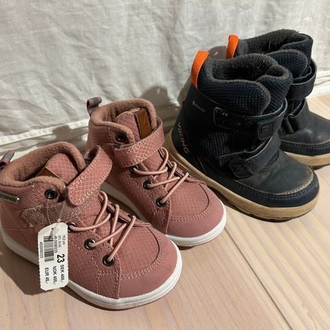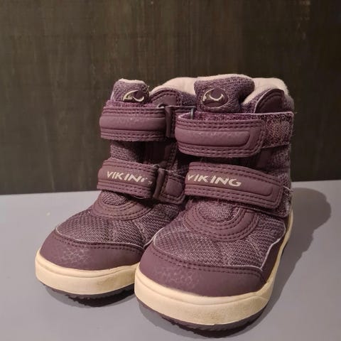 Viking barnestøvler for jente i størrelse 23. Støvlene har en slitesterk såle med godt grep. Passer til bruk i kalde og våte forhold (vanntett). Godt brukt og dermed synlig slitasje, dog ingen hull eller skader som ødelegger for støvlenes funksjon! Mye (!) bruk igjen!!