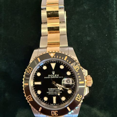 Vurderer salg av min komplette Rolex Submariner 2016, 116610LN. Kjøpt hos forhandler i Valencia, Spania. MVA betalt og dokumentasjon medfølger. Kommer altså komplett ink. alt av kvitteringer, bokser og tag osv. Uret ble brukt i rotasjon fra 2016-2020, og fra 2020-2025 ved enkelte anledninger. Ingen riper eller hakk, men normale hairlines. Uret er i god stand og går relativt presist, selv om den bør får en service ila 2026. Besvarer ingen skambud eller useriøse henvendelser uten fullt navn. Oppbevarer ikke klokken hjemme så trenger en dag i forveien om du vil se klokken.