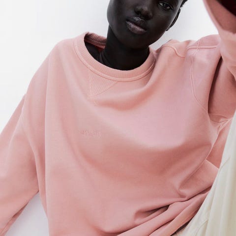 H&M Genser i størrelse XL for kvinner, laget av bomull. Genseren er rosa og har detaljer i stoffet med teksten 'MILANO 38' på forsiden.