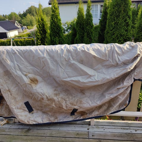Bucas Irish Turnout str 155 100g med hals (ikke avbildet) selges. Halsen er lik som dekkenet. Ingen bruksmerker, kun brukt en gang siden det ble vasket og impregnert i høst og kun en håndfull ganger totalt. Godt og slitesterkt dekken!