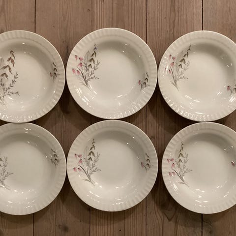 Søkeord Kahla porselen tallerkener DDR Øst-Tyskland blomstermotiv lilje grå rosa vintage retro 24 cm 4 stk samlet salg finporselen samlerobjekt brukt porselen tallerken dekor fløyelskant kremhvit GDR Krone-merke Kahla servise del Østtysk porselen blomster liljeblad samleservice FINN.no secondhand vintage porselen blomstermotiv Kahla tallerken 24cm hverdagsbruk fest hvit base.