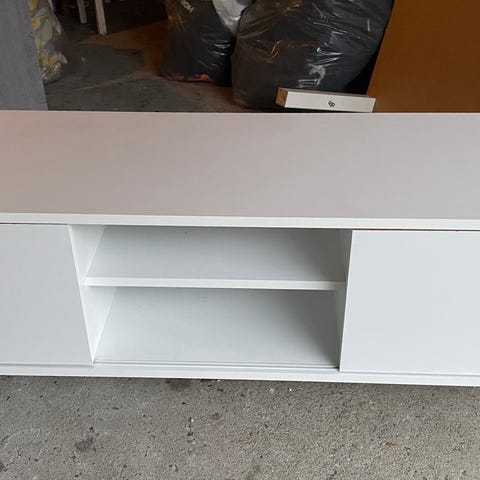Helt grei tv benk. Med 2 skuffer og 2 hyller.