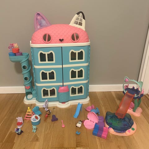 Gabby dukkehus og båt til salgs. Pent brukt. Noen figurer følger med. Må hentes.