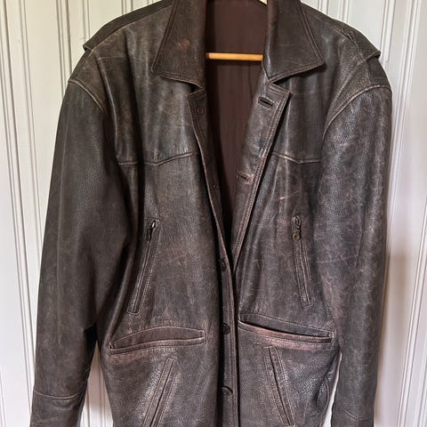 Selger en kul skinnjakke da jeg ikke bruker den så mye lenger.