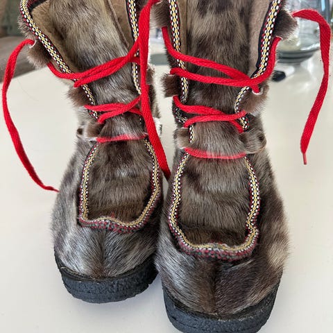 UGG vinterstøvler i str 38, pent og lite brukt med noe slitasje. Farge - beige skinn.