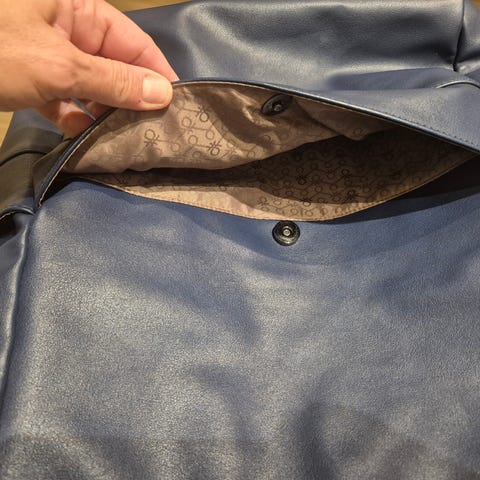 🧶 Usikker om den er laget av ekte skinn da jeg fikk den i gave