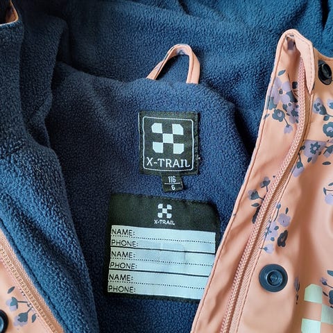 Selger dette godt brukte regntøyet til barn på 5 år.