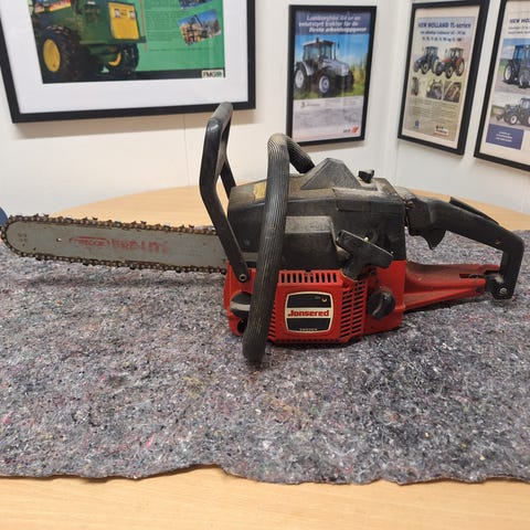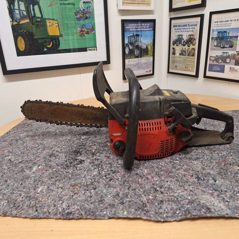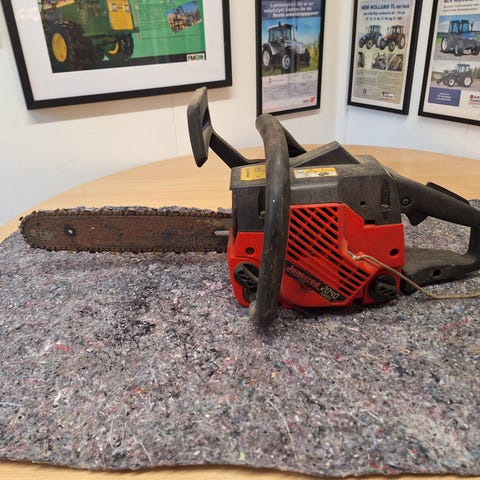 Går høyt på tomgang. Lagret lenge, så hostet og harket litt til å begynne med. Gikk fint etter en liten stund. Virker som kjedebremsen henger på eller at det er noe galt med sverd/ kjede.