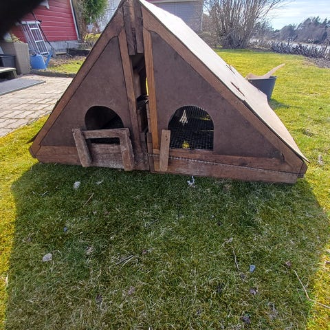 Halvferdig hønsehus i tre selges