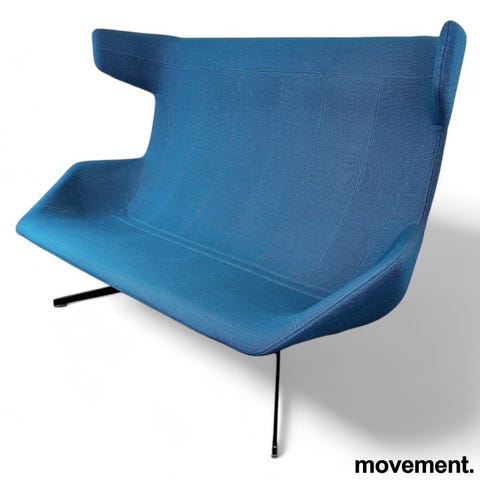Sofaen har plass til to personer og kombinerer funksjonell sittekomfort med tydelig design. Den fungerer som et markant møbel i rommet og passer særlig godt i kreative miljøer eller resepsjonsområder med behov for formsterke løsninger.