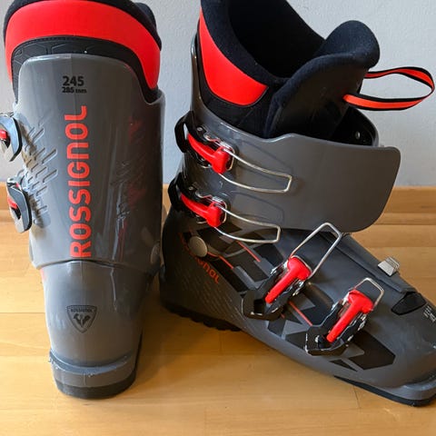 Rossignol Hero J4 alpinstøvler. Str 235 - 275 mm. Fire spenner for perfekt justering. Høy komfort, mykere fleks, varme. Brukt, men like hele, velfungerende og i god stand.