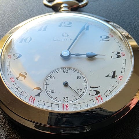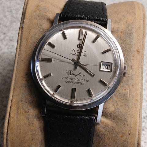 En vintage Kirovskie herreurselges. Klokke er fra mid 50-tallet, tilstand som på bilder. Ripe/sprekk i glasset nederst. Klokken tikker og går, servicehistorikk er ukjent.