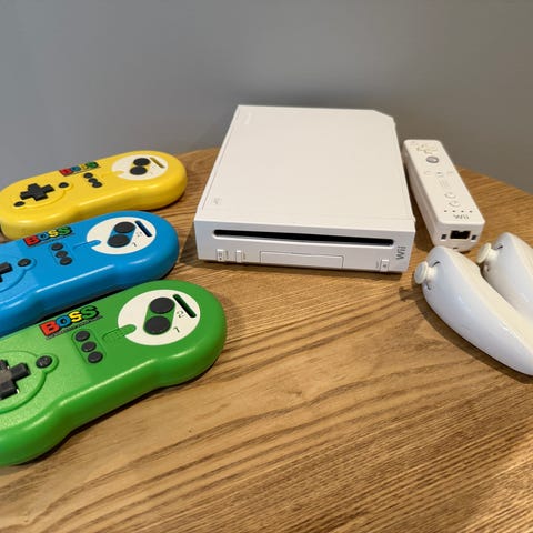 Selger en svart Nintendo Wii i god stand med mye ekstrautstyr – perfekt for familie, venner eller en nostalgisk spillkveld! Følgende er inkludert: